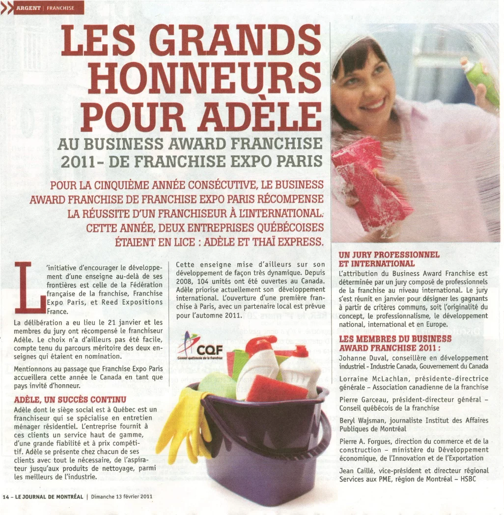Pour la cinquième année consécutive, le business Award Franchise de Franchise Expo Paris récompense la réussite d’un franchiseur à l’international. Cette année, deux entreprises québécoises étaient en lice : Adèle et Thaï express.